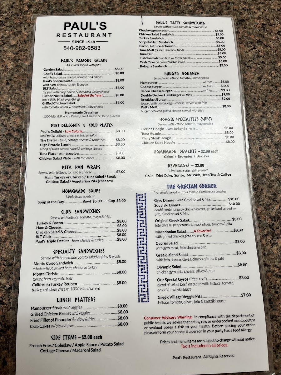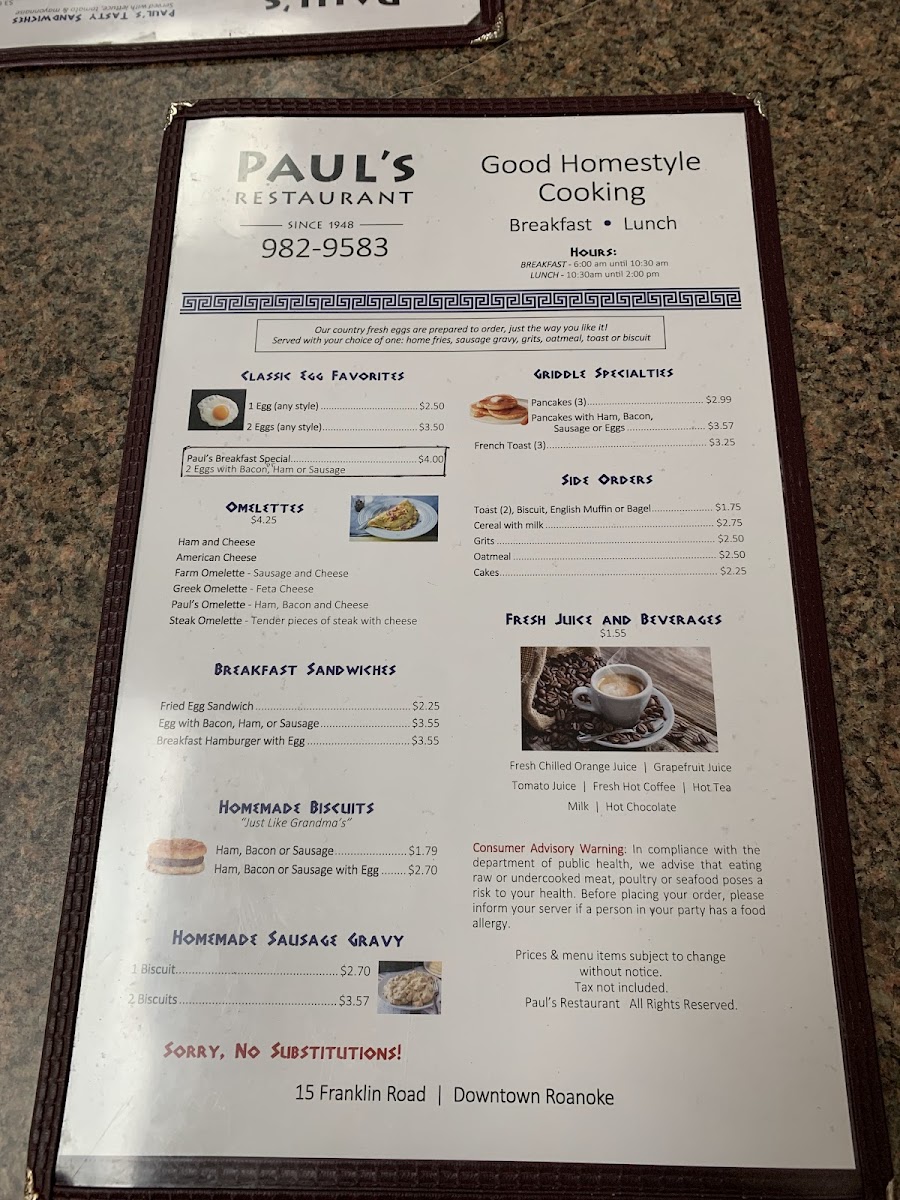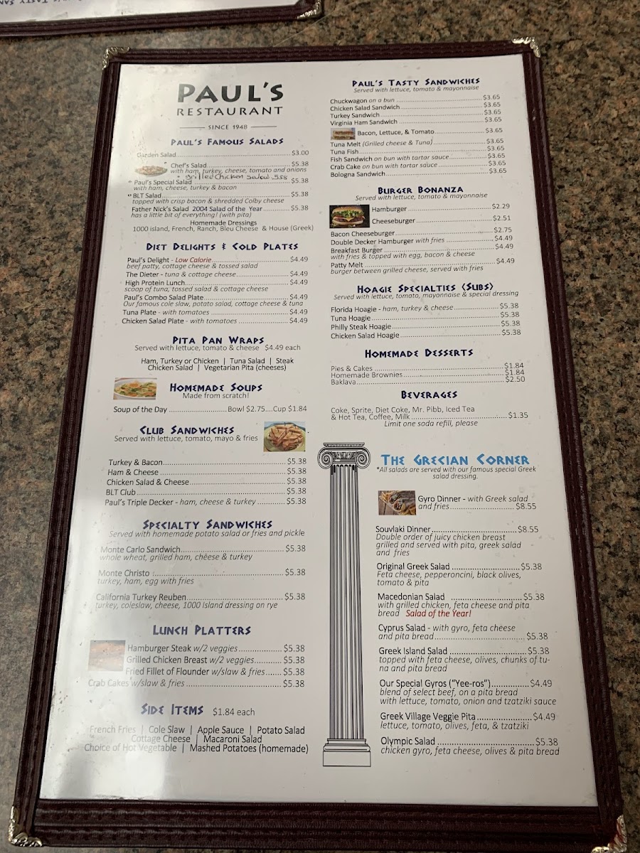 Welcome to Paul's Restaurant, a cherished establishment located at 13 Franklin Rd SE in Roanoke, VA, serving the community since 1948. This family-owned diner masterfully blends classic American breakfast and lunch with delightful Greek fare, creating a menu that resonates with both locals and visitors alike.