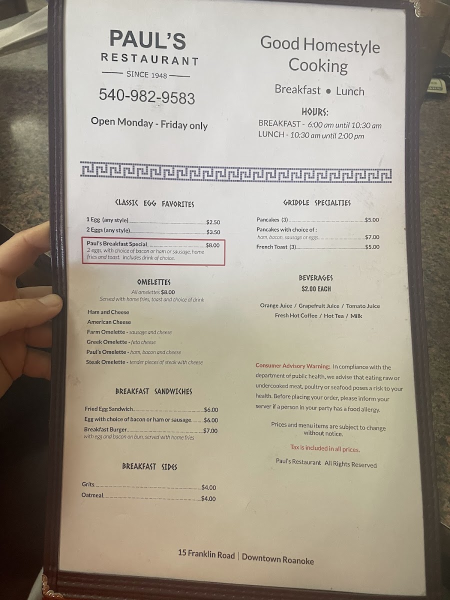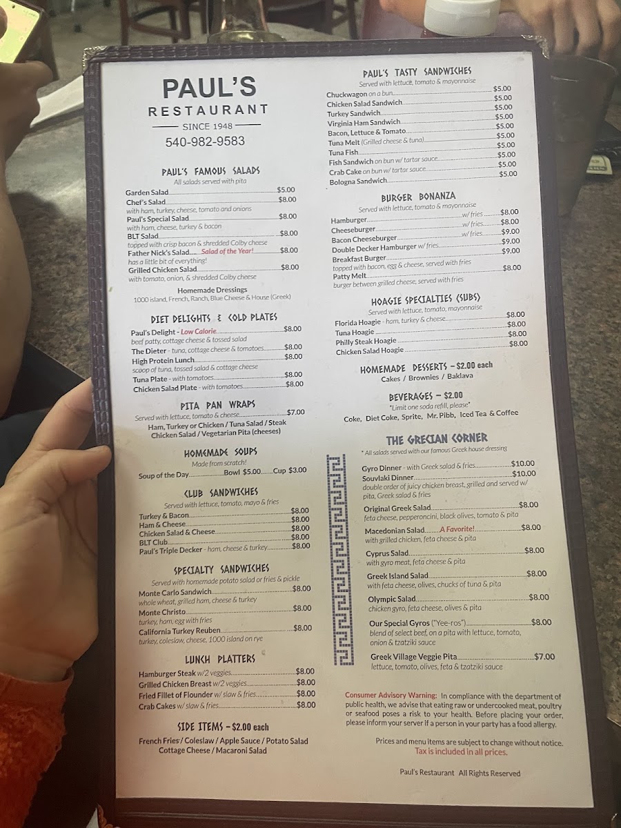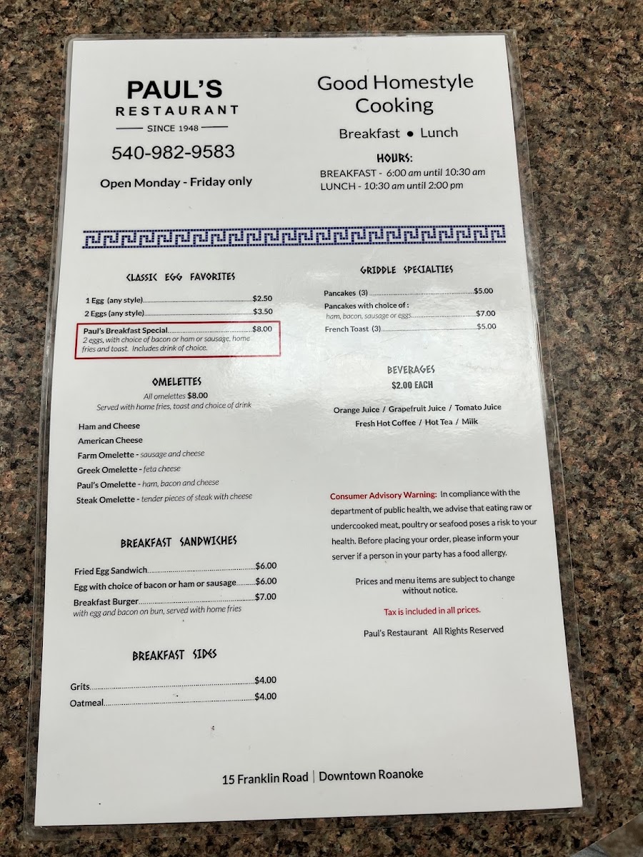 Welcome to Paul's Restaurant, a cherished establishment located at 13 Franklin Rd SE in Roanoke, VA, serving the community since 1948. This family-owned diner masterfully blends classic American breakfast and lunch with delightful Greek fare, creating a menu that resonates with both locals and visitors alike.